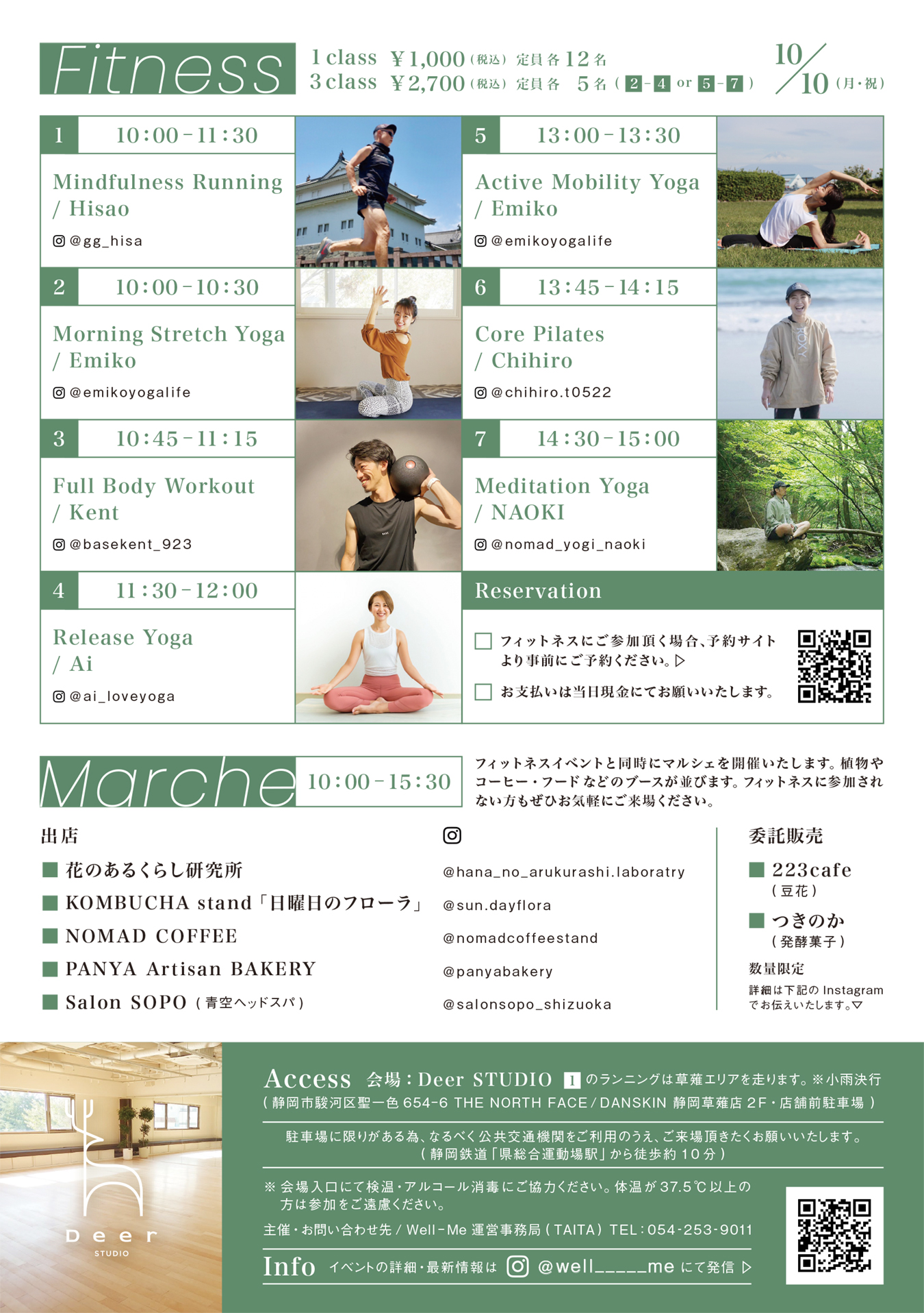 フィットネスへのご参加は以下をお読み頂き、承諾の上、こちらのサイトより事前予約をお願いいたします。( マルシェはご予約なしでどなたでもご来場頂けます。 )